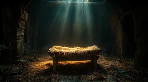 Nativity of Jesus, empty manger at night with bright lights Stock Photo from www.alamy.com